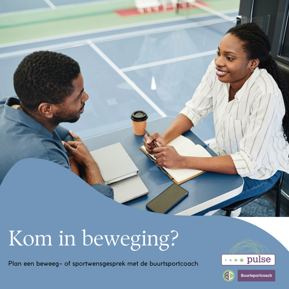 Heb je de wens om meer te bewegen, maar vind je het lastig om dit in de praktijk te brengen? Wil je (meer) gaan sporten maar weet je niet waar? Of weet je niet goed welke sport bij je past? Het beweegwensgesprek heb je met een buurtsportcoach en is laagdrempelig en gratis. De buurtsportcoach is een specialist op het gebied van bewegen en sporten en is goed op de hoogte van het beweegaanbod voor jong en oud in de regio.